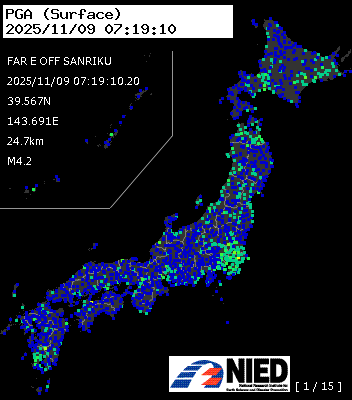 | 45 | 2025/11/09 07:15:03 | 三陸東方はるか沖 | 39.4N | 143.9E | 5.0km | M4.0 | AQUA-REAL |