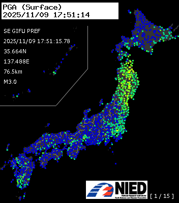 | 133 | 2025/11/09 17:51:15.78 | 岐阜県南東部 | 35.664N | 137.488E | 76.5km | M3.0 | — |