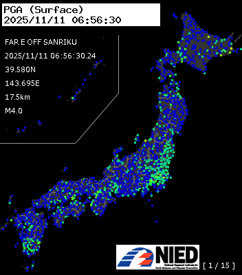 | 14 | 2025/11/11 09:20:21.19 | 宮城県東方沖 | 38.714N | 142.234E | 32.0km | M2.5 | — |