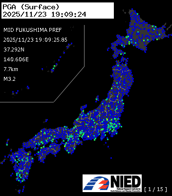 | 23 | 2025/11/23 19:09:25.85 | 福島県中部 | 37.292N | 140.606E | 7.7km | M3.2 | — |