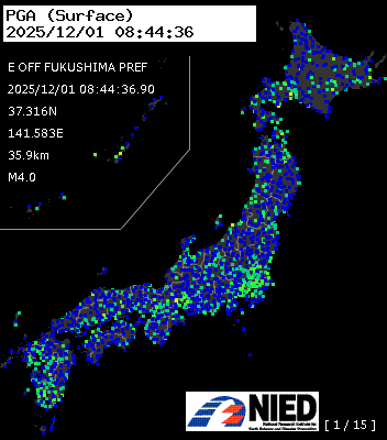 | 10 | 2025/12/01 08:44:35 | 福島県東方沖 | 37.3N | 141.7E | 28.0km | M4.1 | AQUA-REAL |