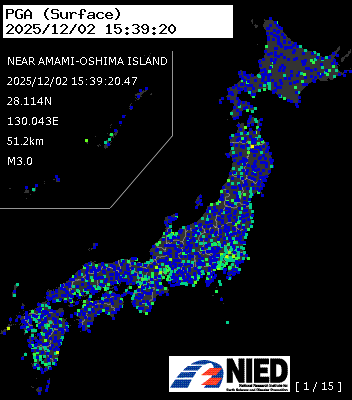 | 14 | 2025/12/02 15:39:20.47 | 奄美大島近海 | 28.114N | 130.043E | 51.2km | M3.0 | — |