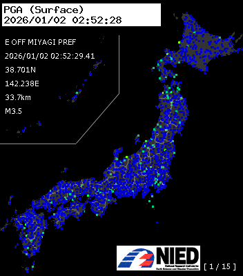 | 4 | 2026/01/02 02:52:29.41 | 宮城県東方沖 | 38.701N | 142.238E | 33.7km | M3.5 | — |
