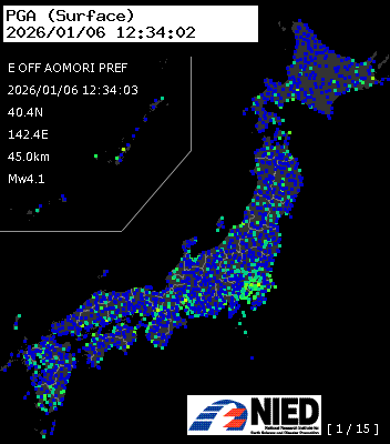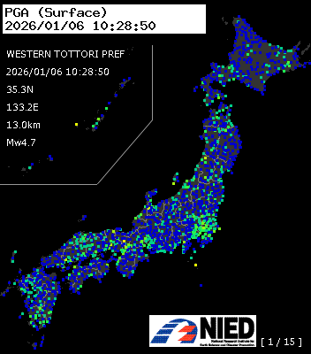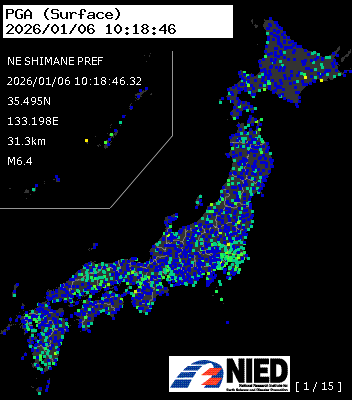 | 15 | 2026/01/06 10:18:46 | 鳥取県西部 | 35.3N | 133.2E | 13.6km | M5.7 | AQUA-REAL |