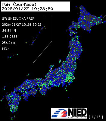 | 6 | 2026/01/27 10:28:50.22 | 静岡県南西部 | 34.844N | 138.085E | 256.2km | M3.4 | — |