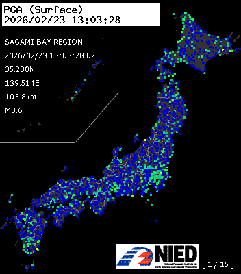 | 9 | 2026/02/23 13:03:28.02 | 相模湾 | 35.280N | 139.514E | 103.8km | M3.6 | — |