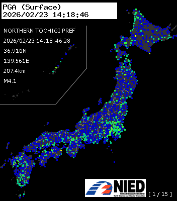 | 12 | 2026/02/23 14:18:46.28 | 栃木県北部 | 36.910N | 139.561E | 207.4km | M4.1 | — |