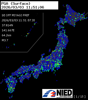 | 3 | 2026/03/03 11:51:07.35 | 宮城県南東沖 | 37.814N | 141.667E | 64.2km | M3.7 | — |