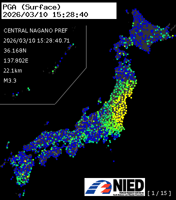 | 45 | 2026/03/10 15:28:40.71 | 長野県中部 | 36.168N | 137.802E | 22.1km | M3.3 | — |