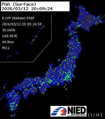 | 15 | 2026/03/12 20:09:24.58 | 茨城県東方沖 | 36.545N | 140.907E | 46.8km | M3.2 | — |