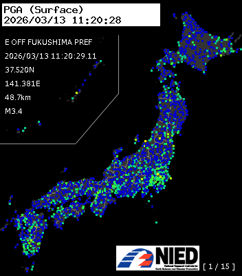 | 20 | 2026/03/13 11:20:29.11 | 福島県東方沖 | 37.520N | 141.381E | 48.7km | M3.4 | — |