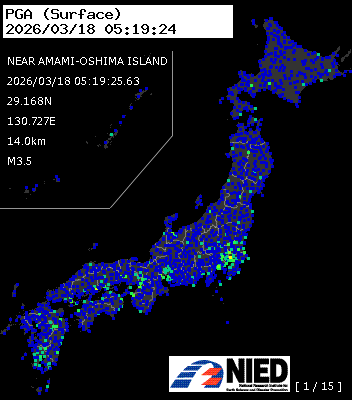 | 6 | 2026/03/18 05:19:25.63 | 奄美大島近海 | 29.168N | 130.727E | 14.0km | M3.5 | — |