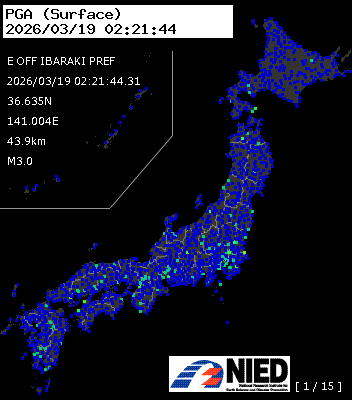 | 1 | 2026/03/19 02:21:44.31 | 茨城県東方沖 | 36.635N | 141.004E | 43.9km | M3.0 | — |