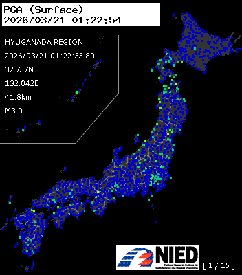 | 5 | 2026/03/21 01:22:55.80 | 日向灘 | 32.757N | 132.042E | 41.8km | M3.0 | — |